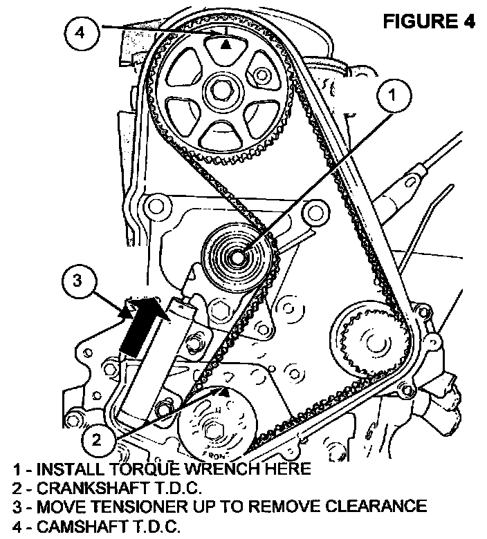6. Using a torque wrench on the bracket assembly pulley (Figure 4), apply 28 Nm (250 in lbs) of torque against the timing belt.
