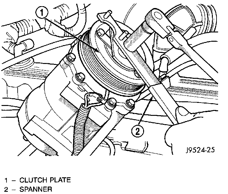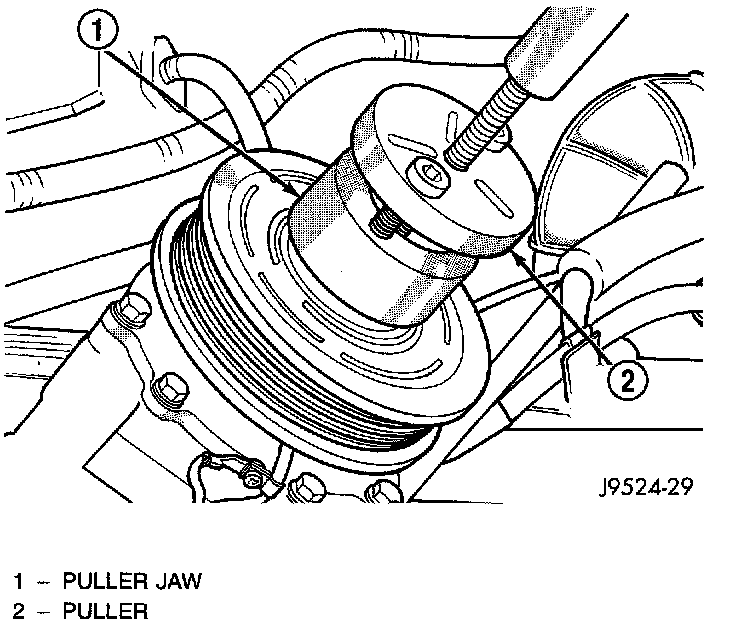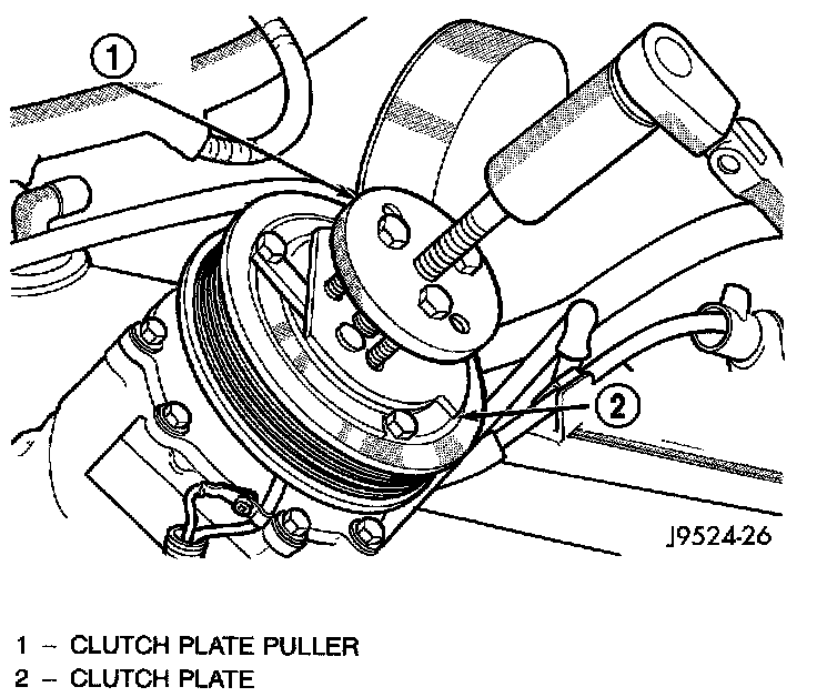 The refrigerant system can remain fully-charged during compressor clutch, pulley, or coil replacement. The compressor clutch can be serviced in the vehicle.REMOVAL