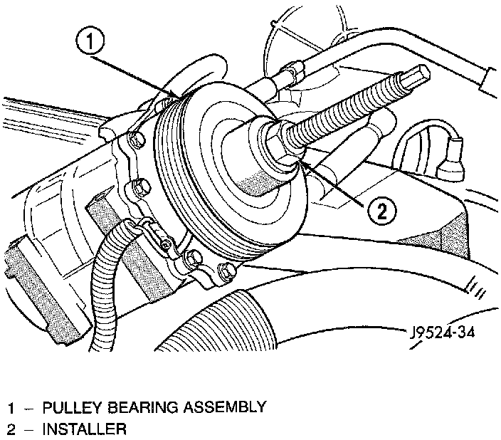 4. Install the pulley bearing assembly with the installer (Special Tool C-6871). Thread the installer on the shaft, then turn the nut until the pulley assembly is seated.