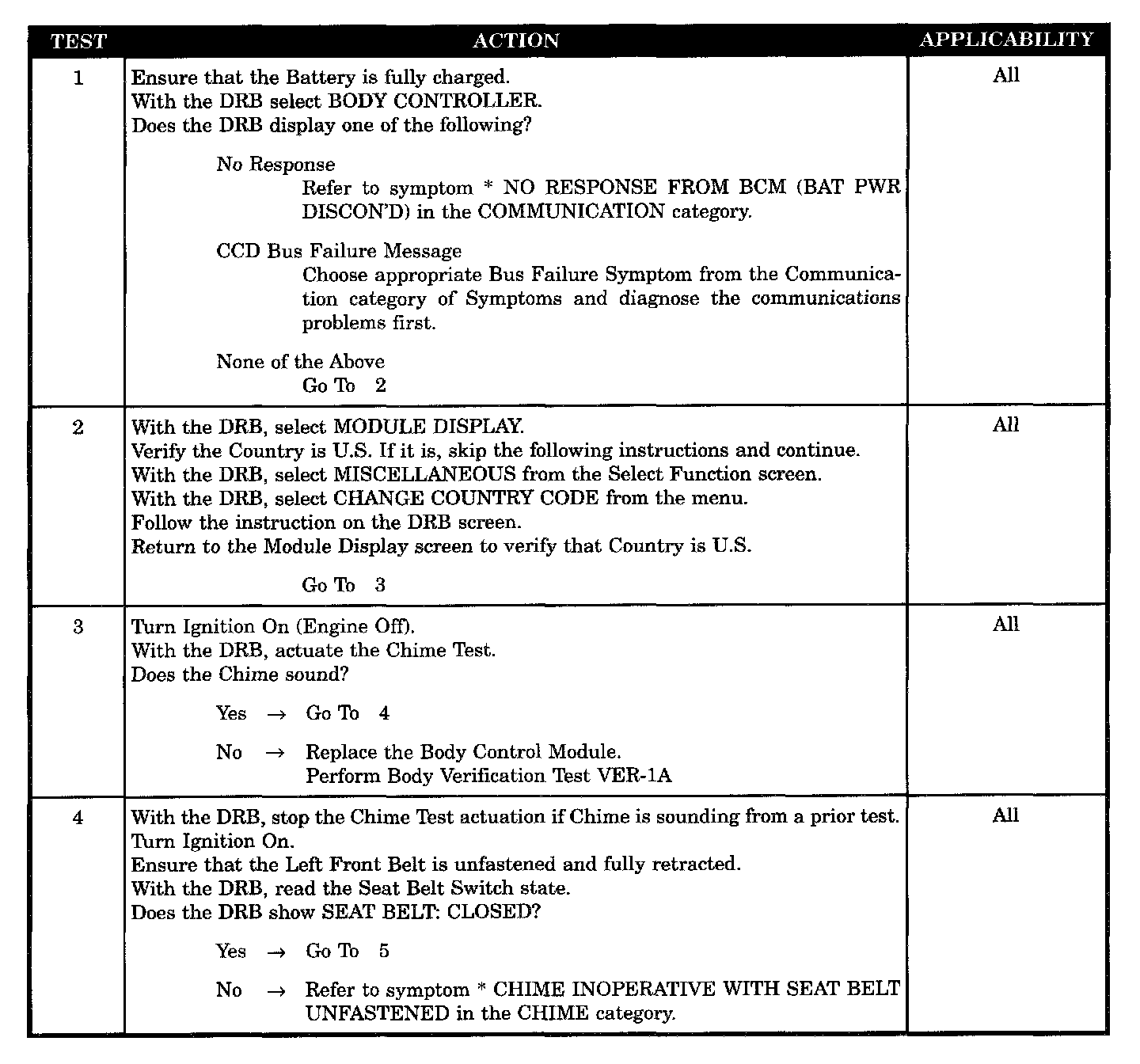 CHIME INOPERATIVE AT ALL TIMES