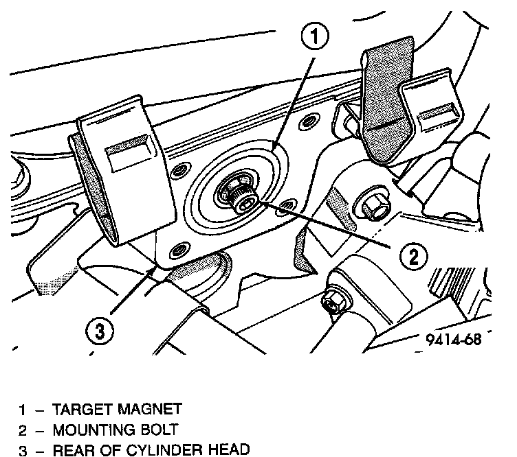 1. Install target magnet in end of camshaft. Tighten mounting screw to 3.4 Nm (30 in. lbs.) torque. Over torqueing the magnet could cause cracking. If magnet cracks replace it.