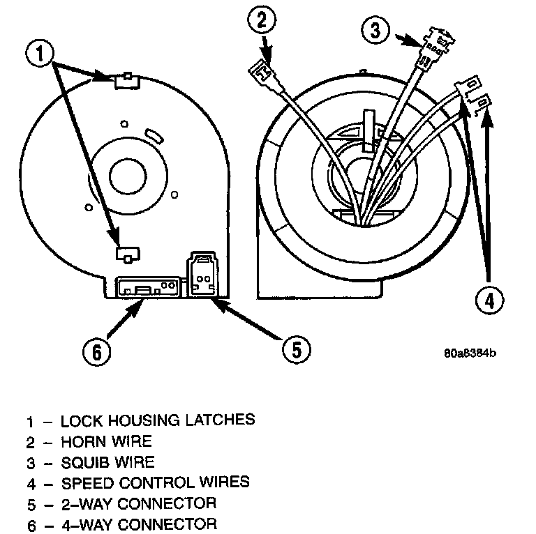 5. Disconnect the horn wire from the steering wheel and remove the speed control wires from the wire guides.