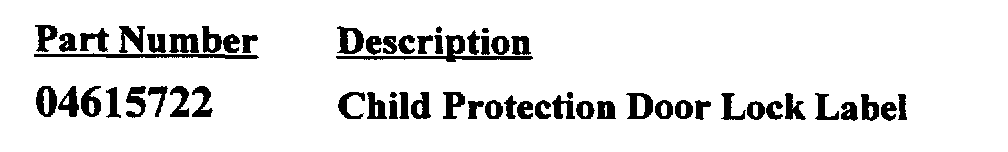 Install child protection door lock labels Add the cost of the labels plus applicable dealer allowance to your claim.