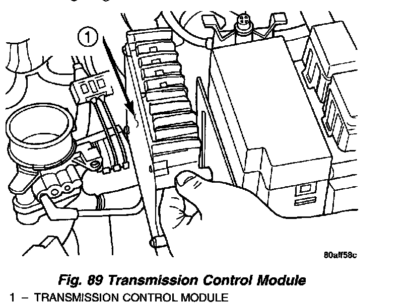 3. Remove transmission control module (TCM) and wiring (Fig. 89).