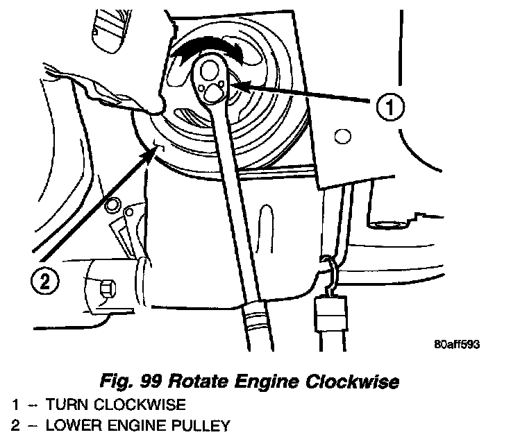 23. Rotate engine clockwise to line up converter bolts (Fig. 99). Remove converter bolts (Fig. 100). Mark converter for reassembly ease.