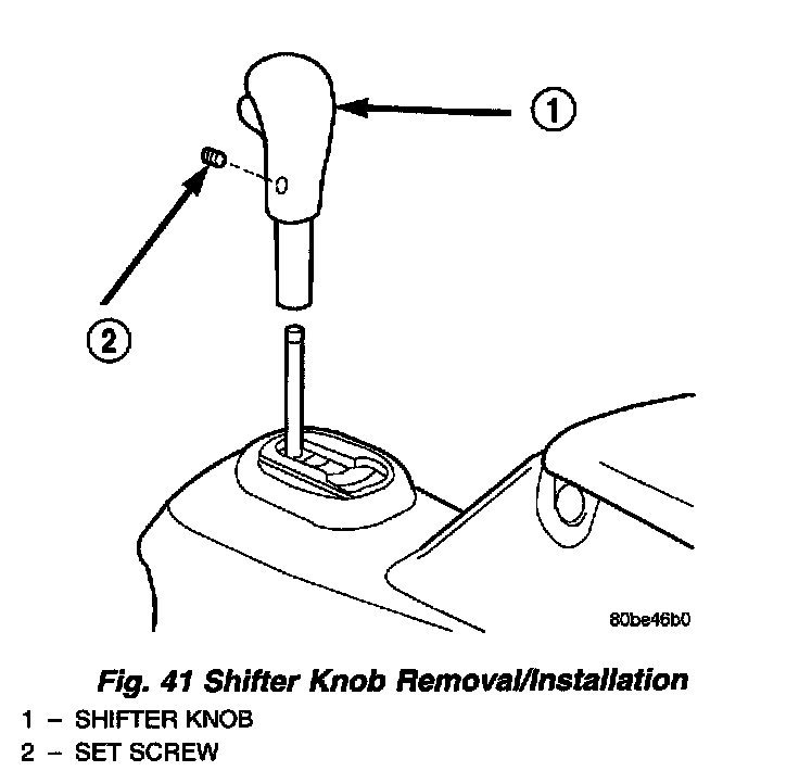 10. Install the gearshift knob and tighten set screw (Fig. 41) to 2 Nm (20 inch lbs.).