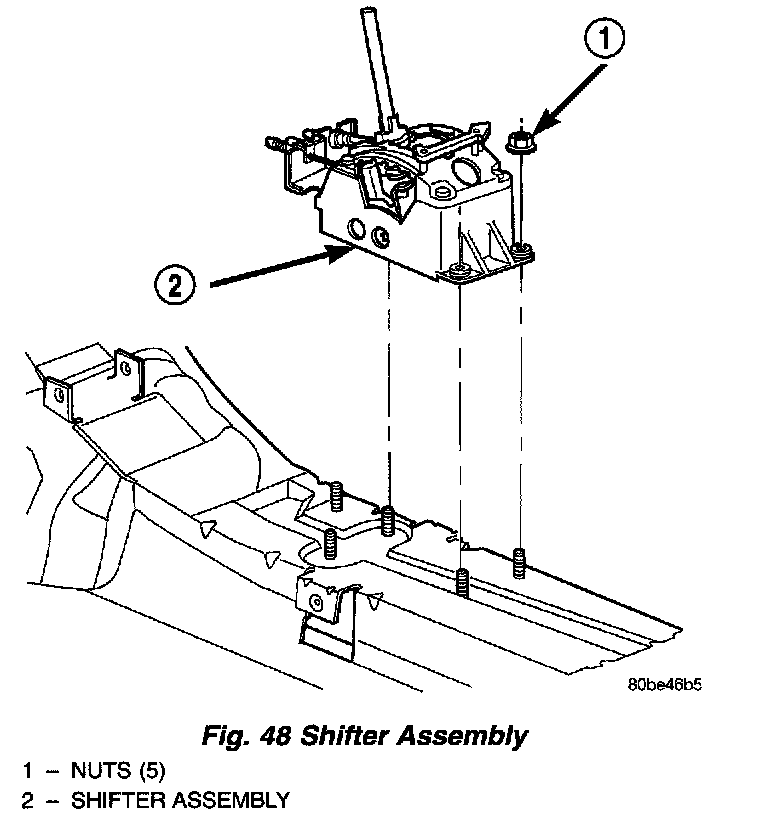 10. Remove the five nuts at the base of the shifter assembly. Remove assembly from vehicle (Fig. 47).
