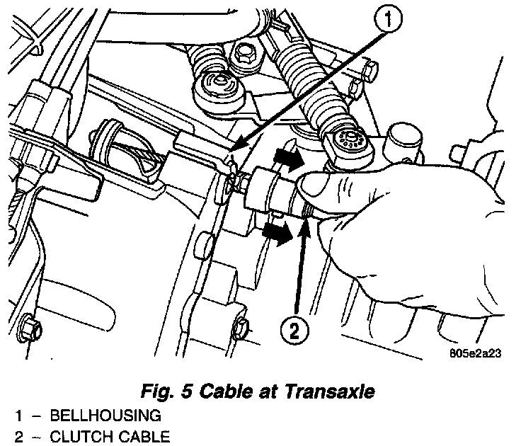 3. Pull back on clutch cable housing and insert into transaxle housing (Fig. 5).