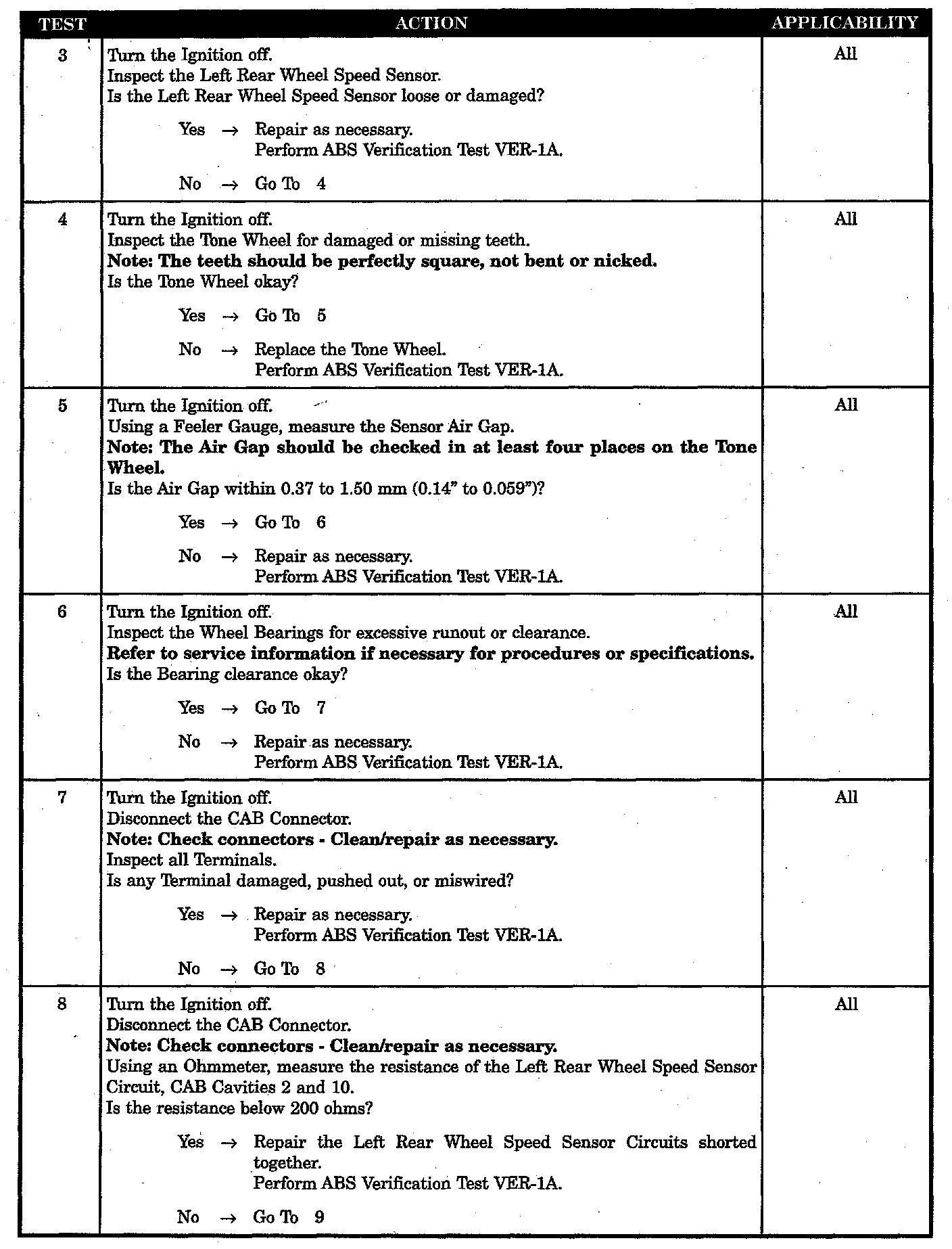 LEFT REAR WHEEL SPEED SENSOR AIR GAP OUT OF SPECIFICATION