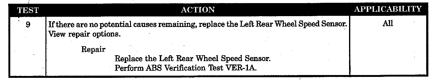 LEFT REAR WHEEL SPEED SENSOR CIRCUITS SHORTED TOGETHER