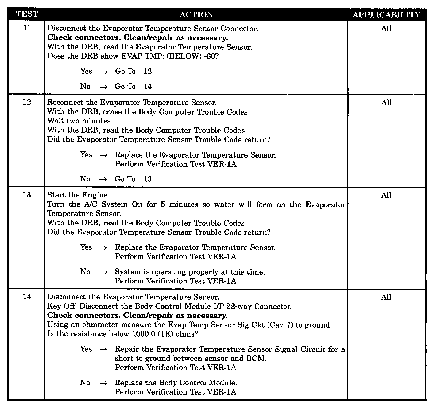 - Evaporator TEMP sensor SIG CKT - short to ground
