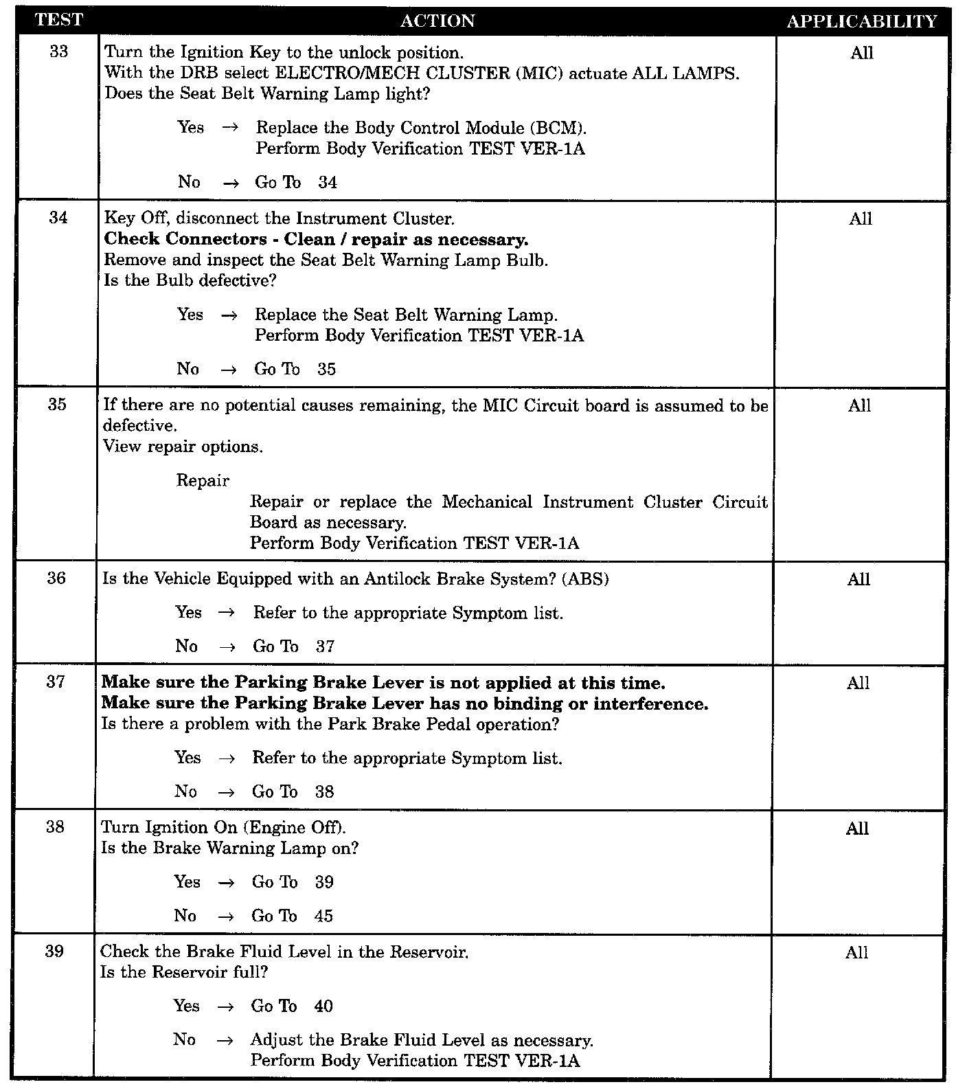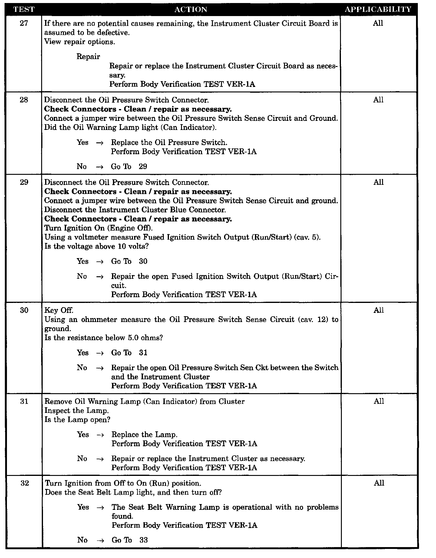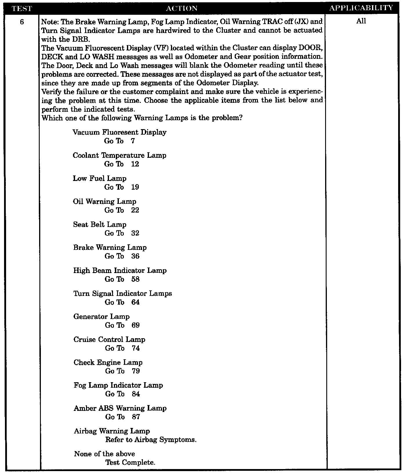 Any or All Cluster Warning Lamp Problems