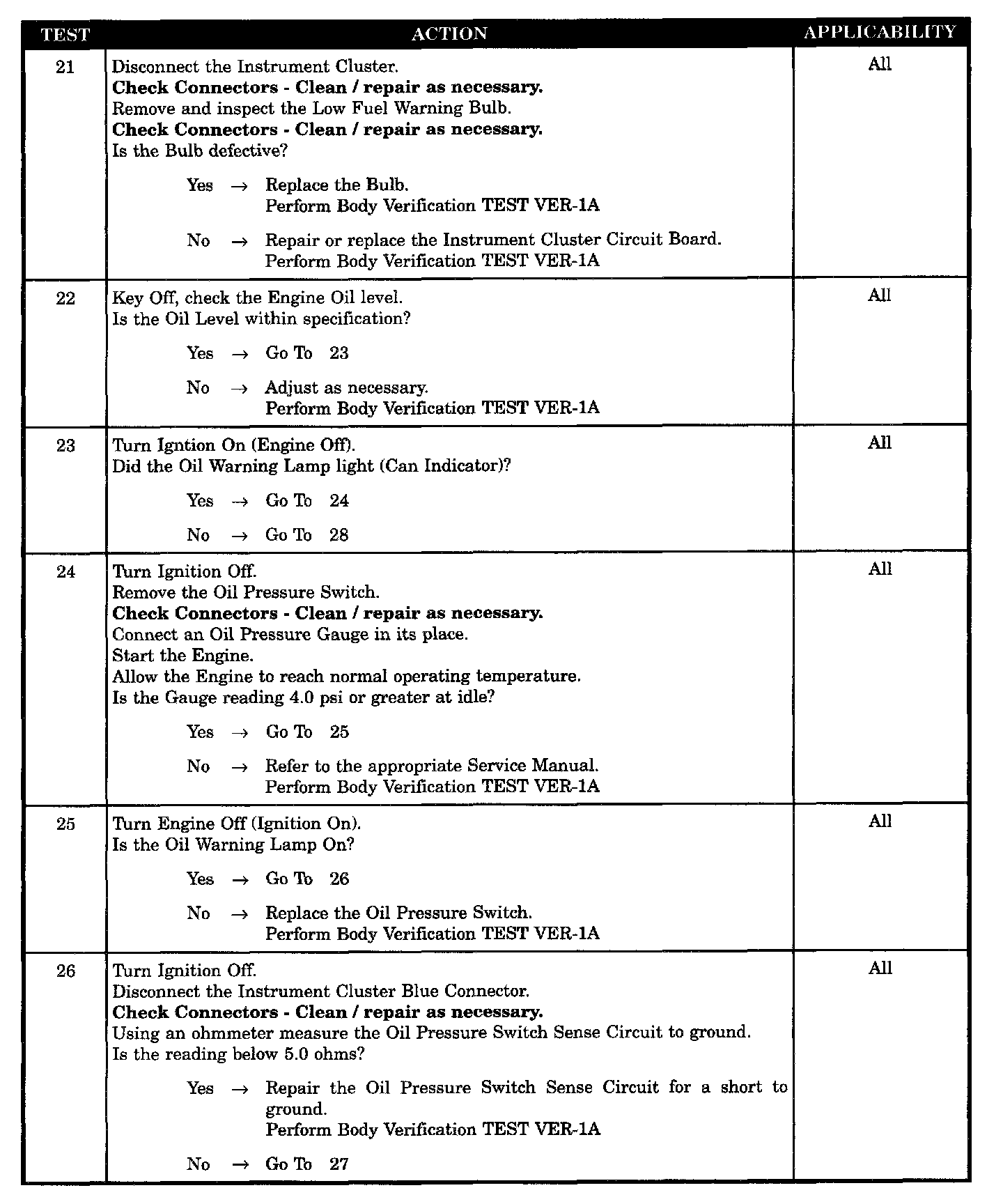 - Oil press switch sense CKT short to GND