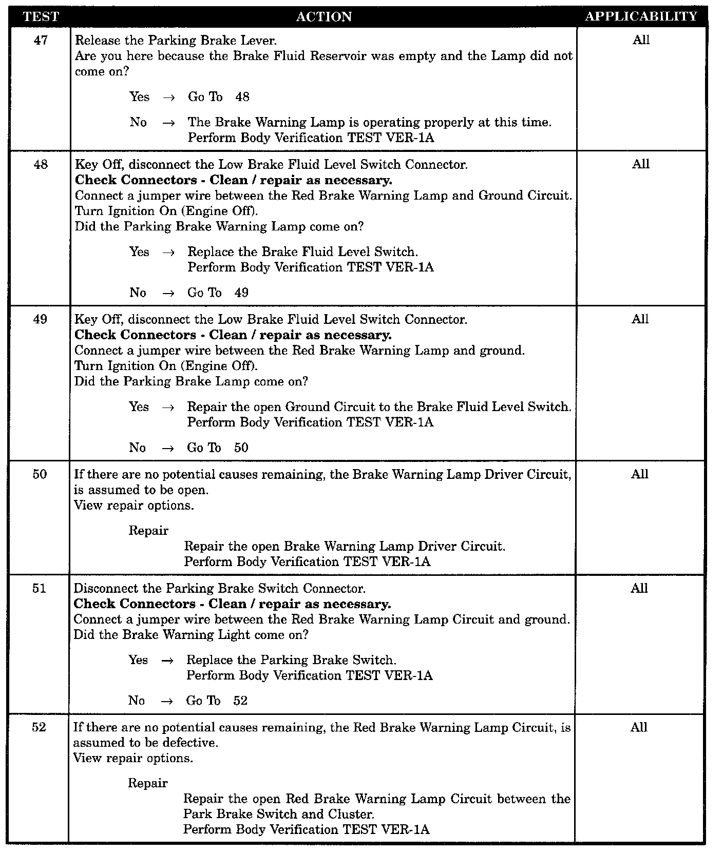 - Brake warning lamp ground circuit open