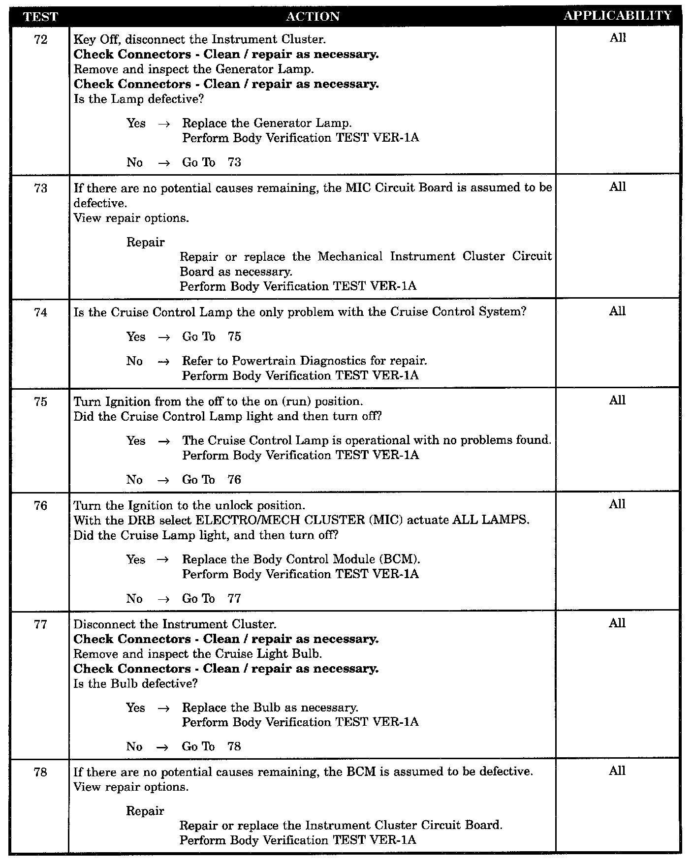 - BCM cruise control lamp output defective