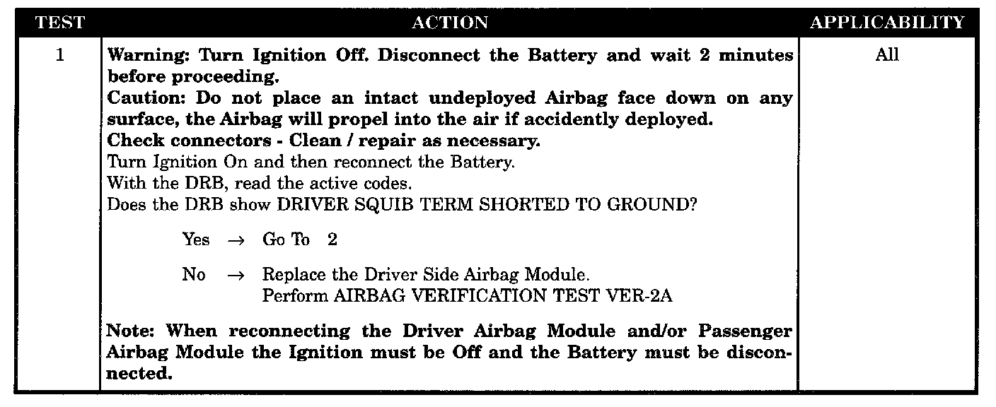- Driver airbag line 1 or line 2 short to ground