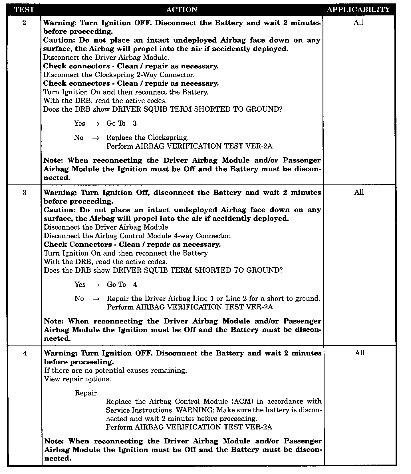 - ACM driver airbag terminal short to ground