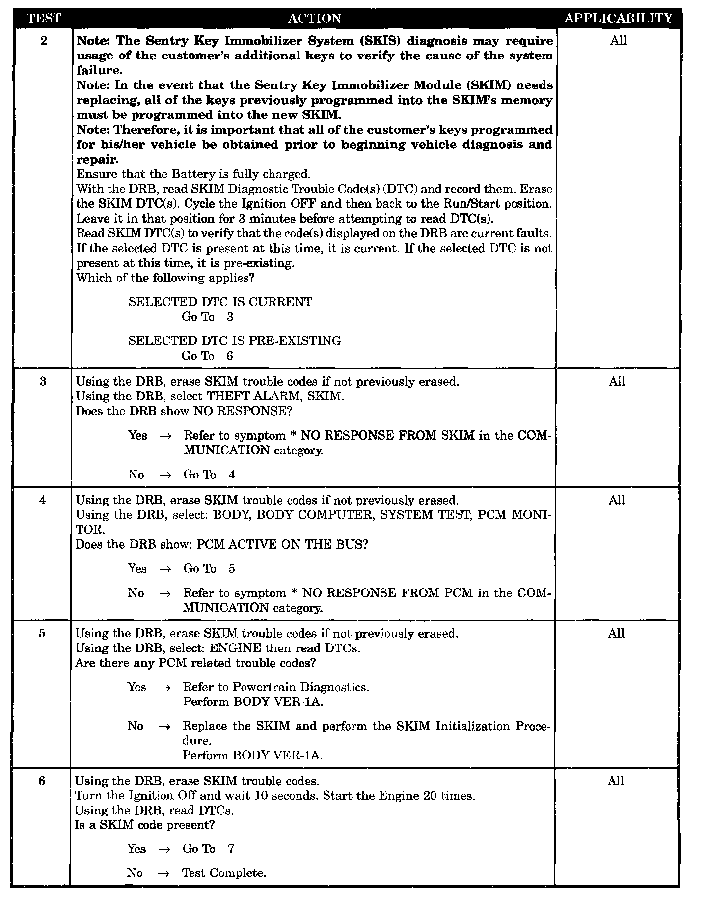 At ignition ON, after ignition ON during any rolling code handshake that occurs with the PCM due to a SKIM reset or a PCM reset, or during "Secret Key" transfers to the PCM.
