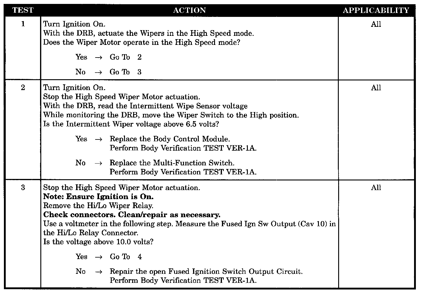 WIPERS NOT WORKING/HI SPEED