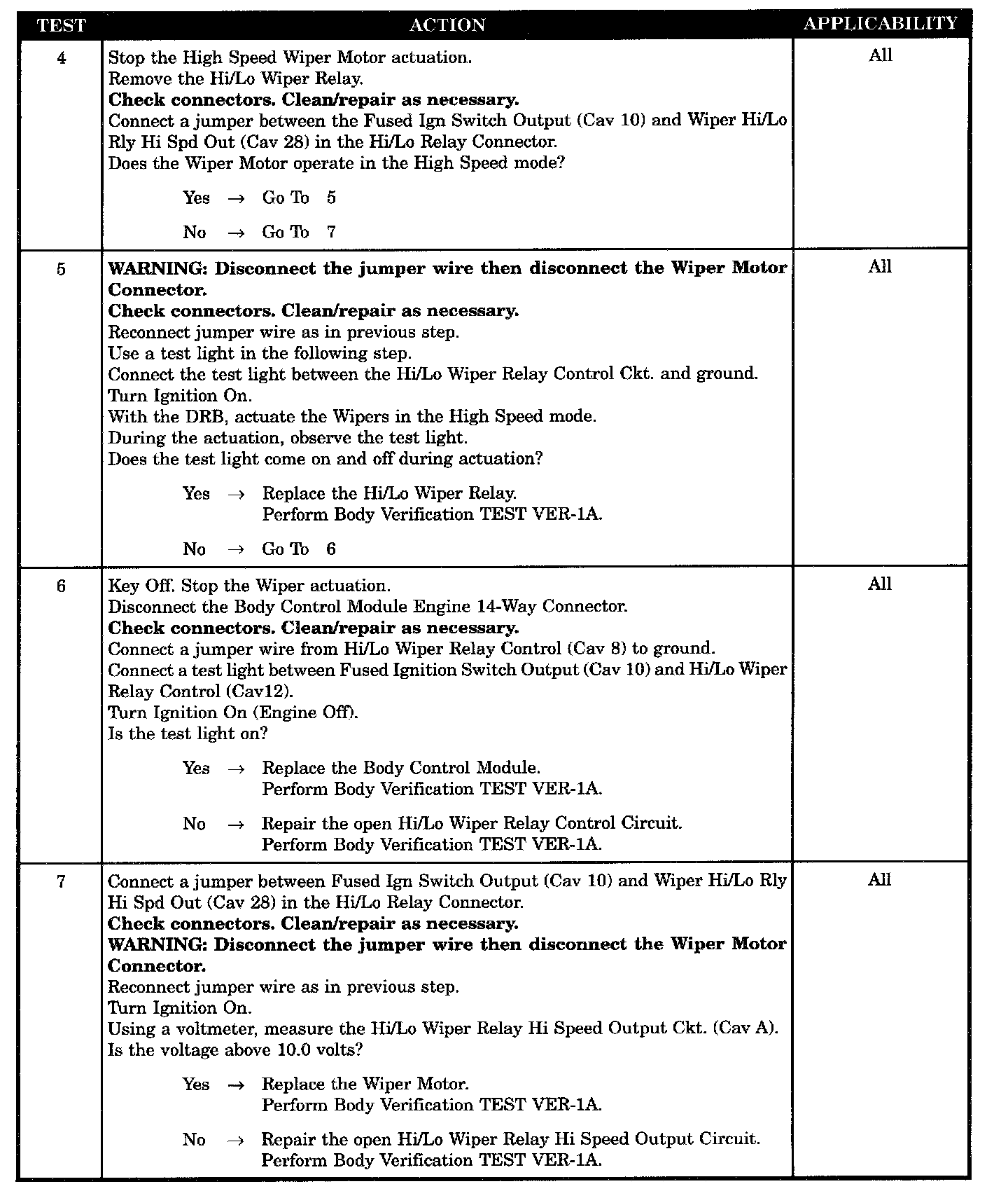 - Open HI/LO wiper relay hi speed output circuit