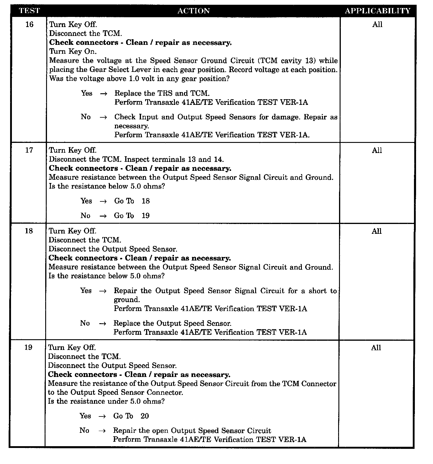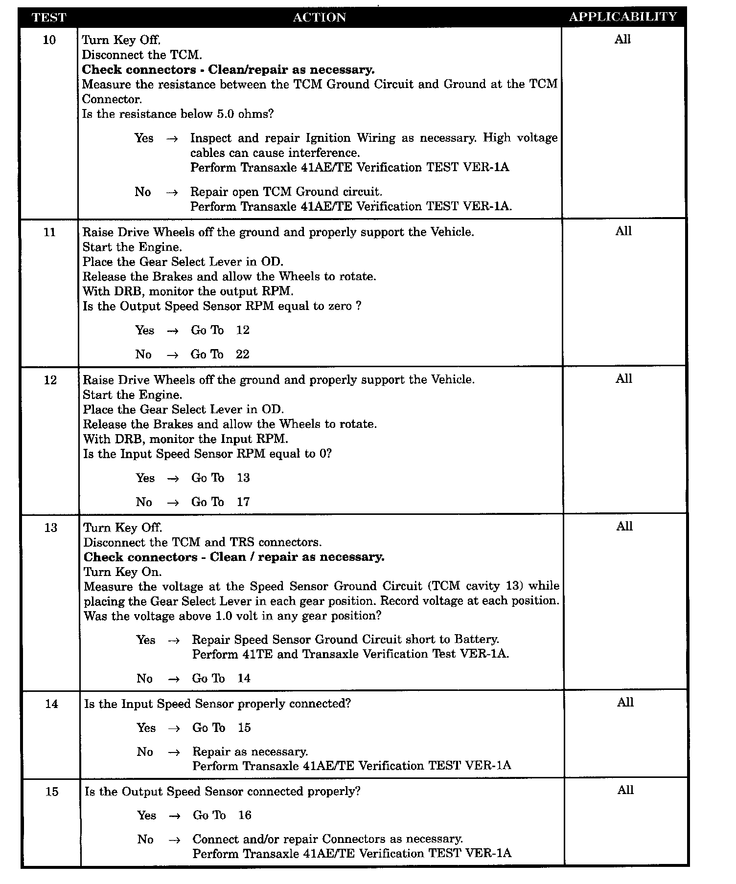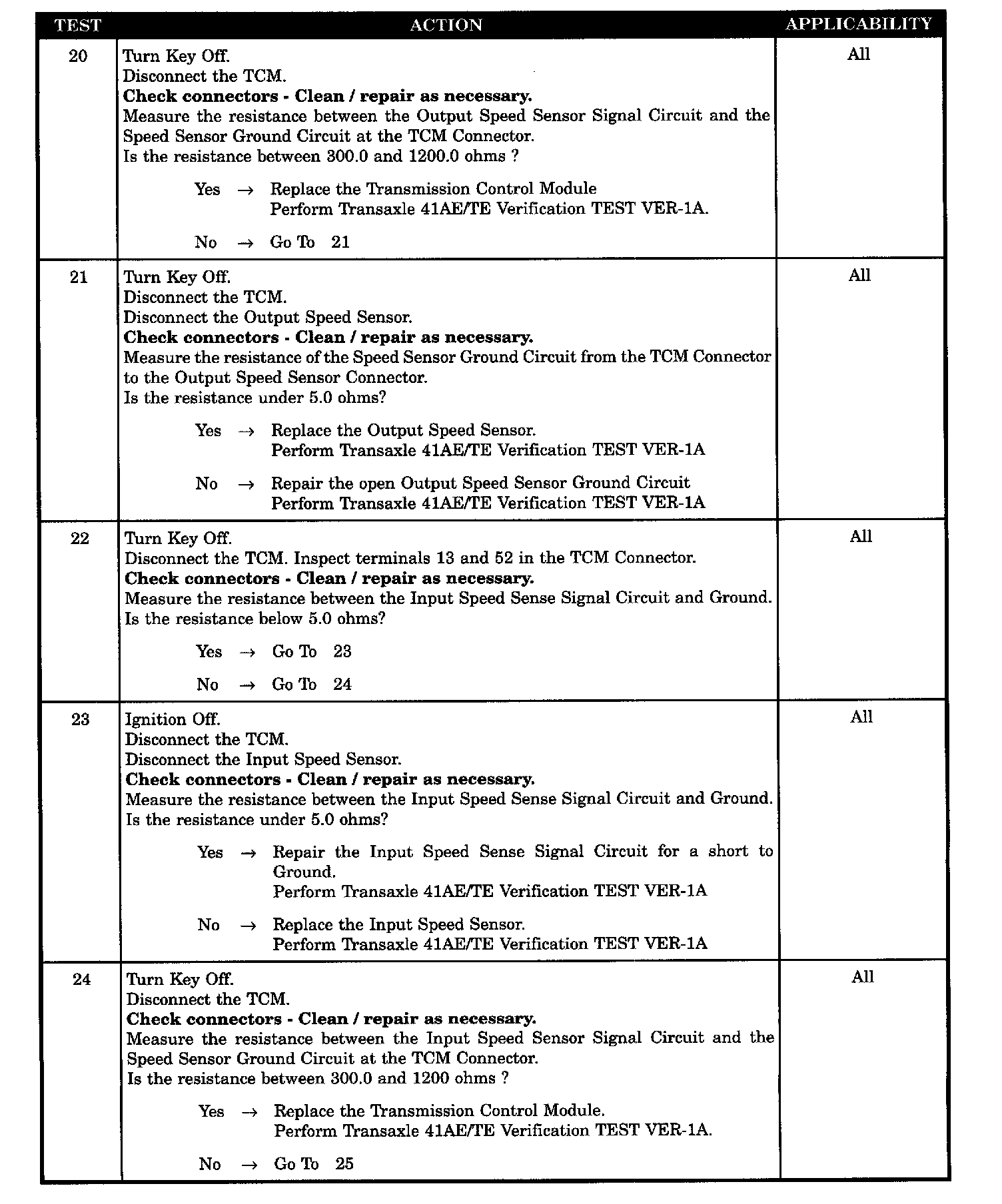 TCM SPEED SENSOR GND SHORTED TO BATTERY