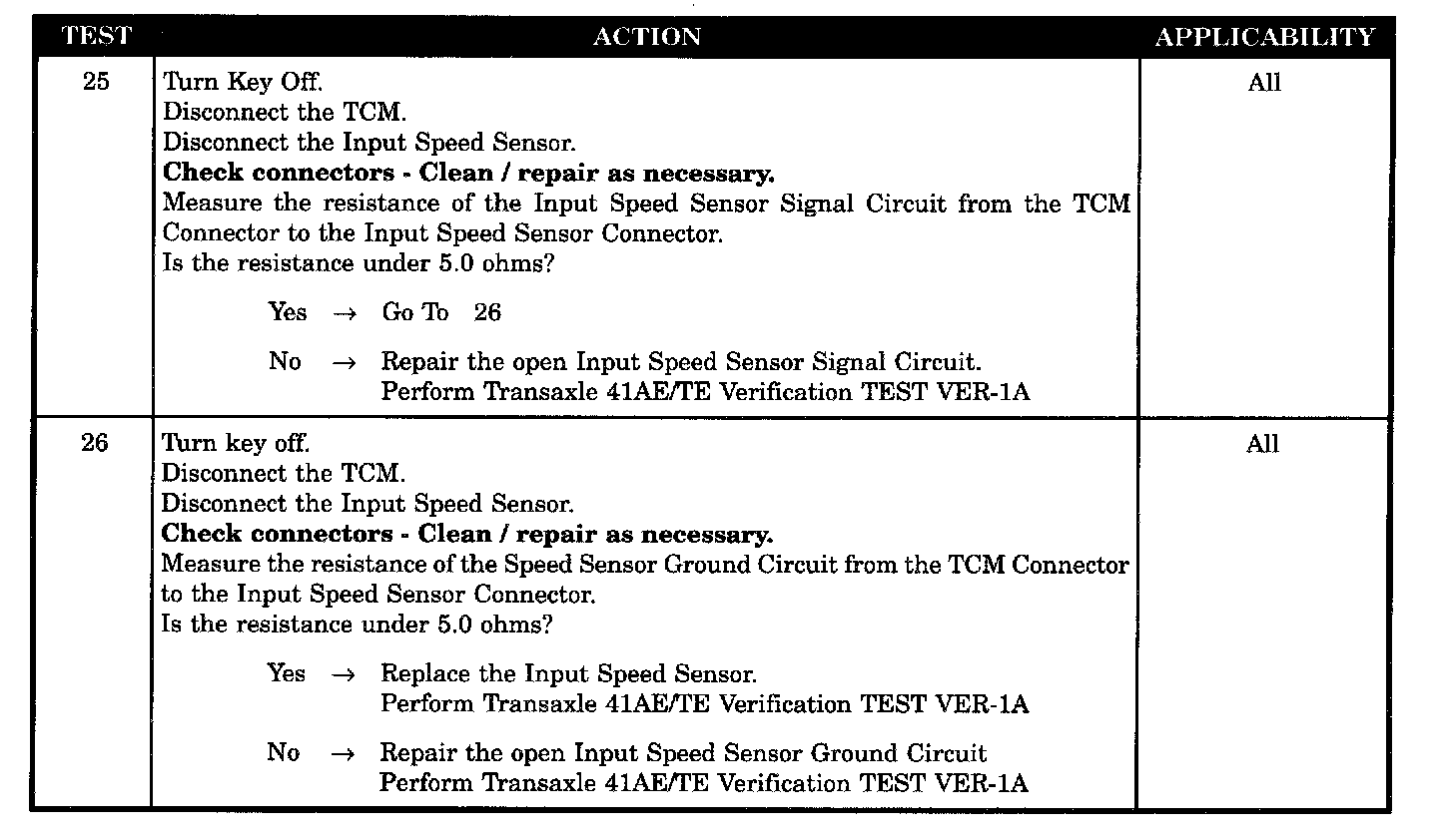 INPUT SPEED SENSOR SHORTED TO GROUND AT TCM