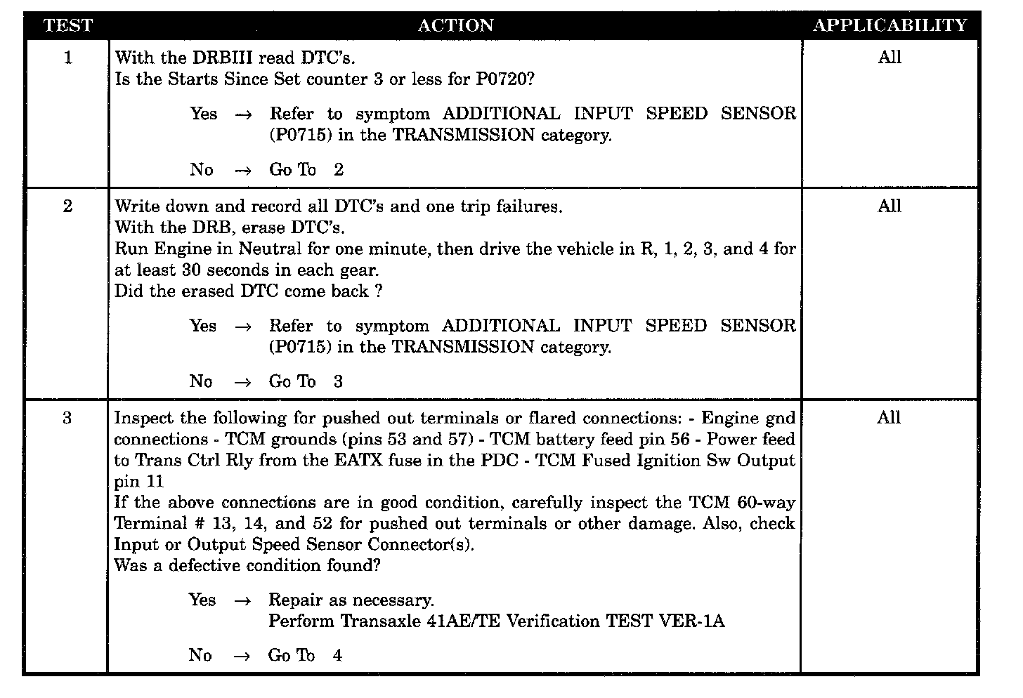 Test Note: All symptoms listed above are diagnosed using the same tests. The title for the tests will be ADDITIONAL INPUT SPEED SENSOR (P0715).