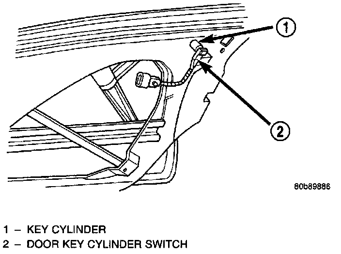 2. Remove illuminated entry switch wiring clip and disconnect connector.
