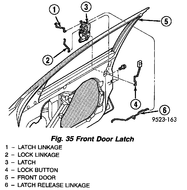 3. Disconnect lock cylinder, lock button and latch release rods from door latch.