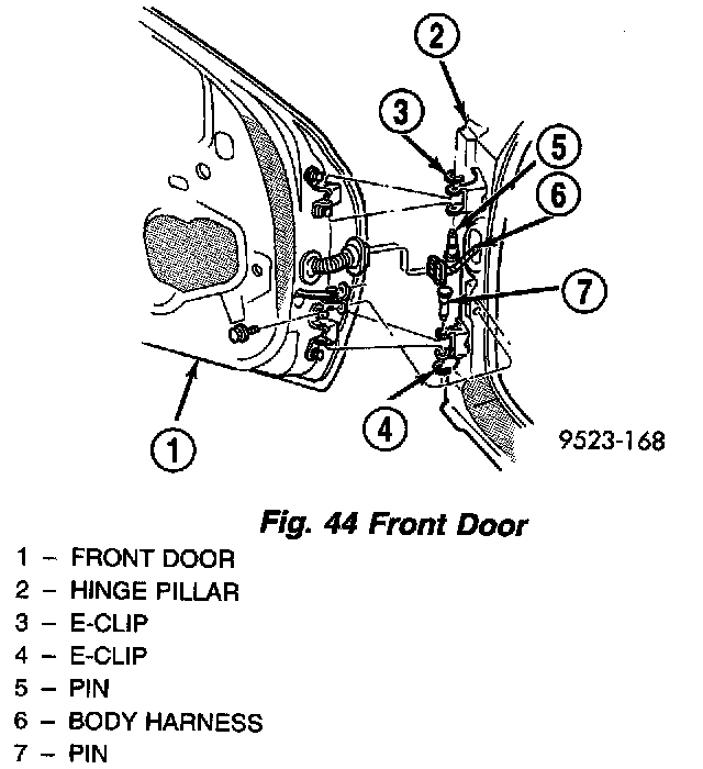 4. Remove clip holding hinge pin in lower door hinge (Fig. 44).