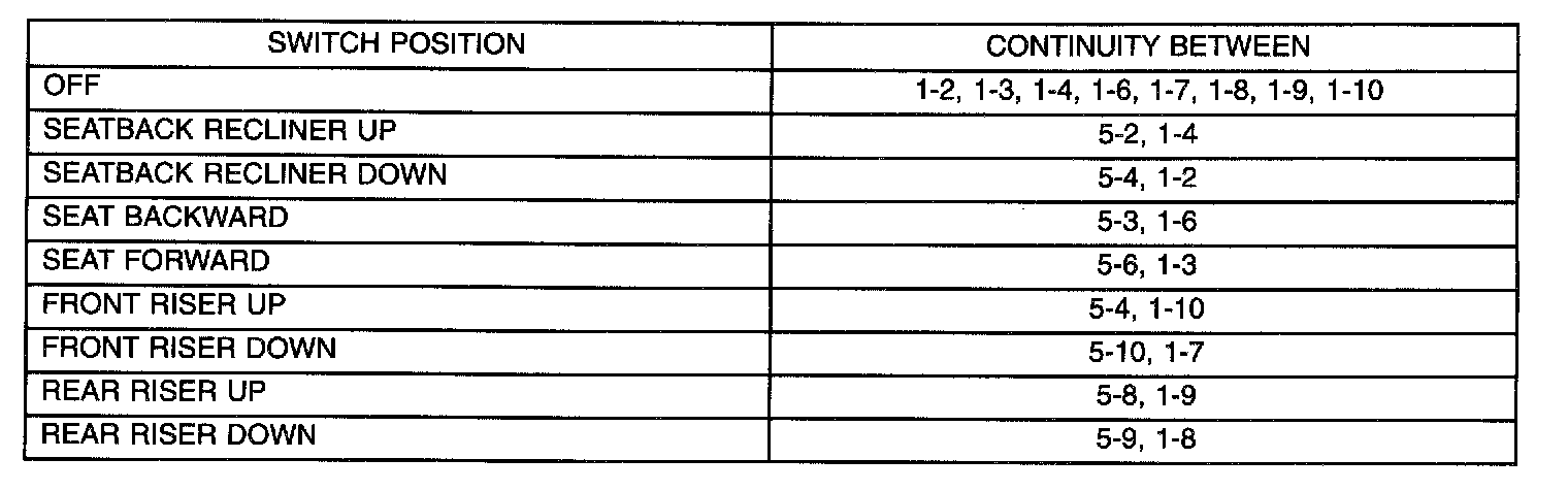Power Seat Switch: Testing and Inspection