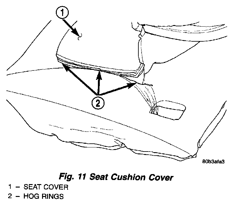 6. Disengage J-strap attaching seat cover from the seat cushion frame (Fig. 10).