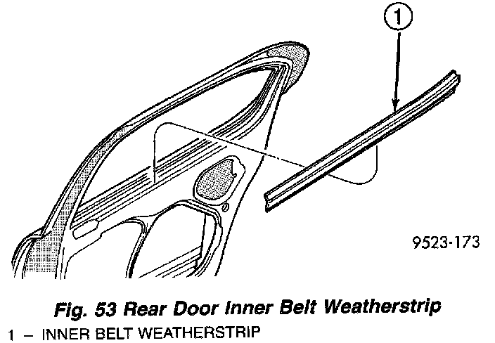 3. Remove inner belt weatherstrip from vehicle (Fig. 53).