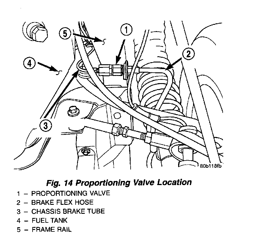 NOTE: The following procedure is for the diagnosis and testing of the proportioning valve(s) on a vehicle equipped with ABS.If a condition of premature rear wheel skid occurs on a vehicle, the proportioning valve should always be tested prior to it being replaced. This is due to the fact that there are conditions other then a faulty proportioning valve which can cause a premature rear wheel skid.