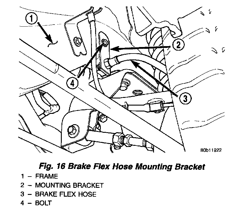 3. Remove the brake flex hose mounting bracket from the frame rail.