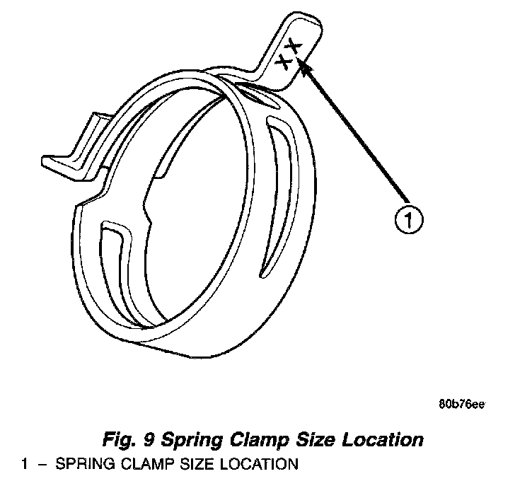 CAUTION: A number or letter is stamped into the tongue of constant tension clamps. If replacement is necessary, use only a original equipment clamp with matching number or letter.