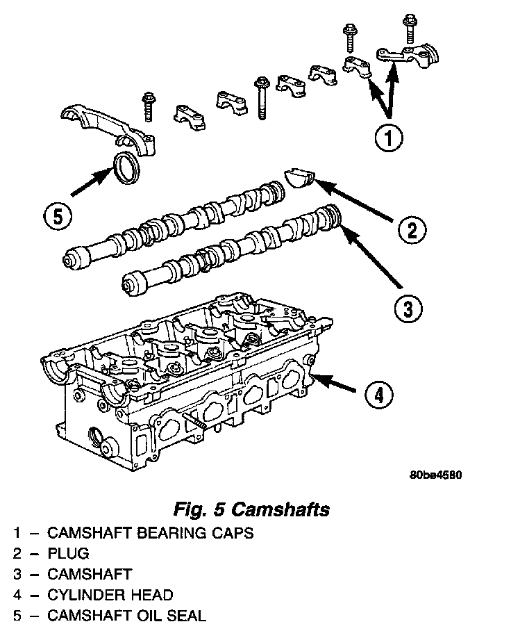 Both nodular iron camshafts have six bearing journal surfaces and two cam lobes per cylinder. Flanges at the rear journals control camshaft end play. Provision for a cam position sensor is located on the intake camshaft on the rear of the cylinder head. A hydrodynamic oil seal is used for oil control at the front of the camshaft.