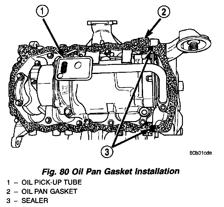 2. Install the oil pan gasket to the block (Fig. 80).