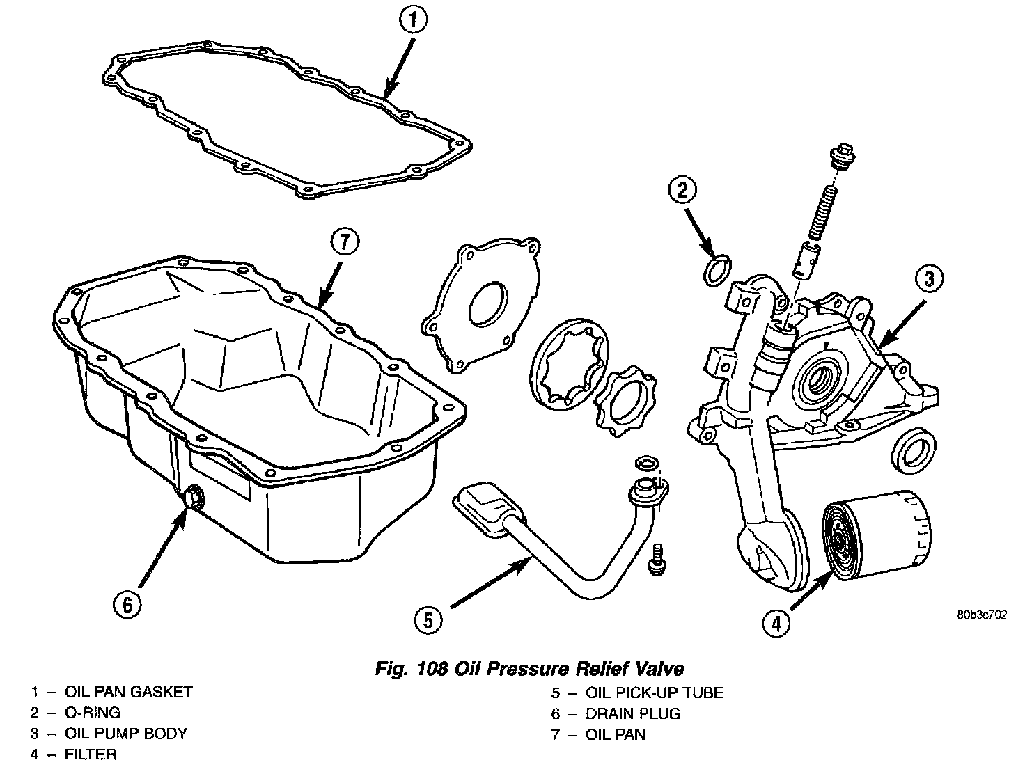 b. Remove spring and relief valve (Fig. 108).