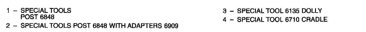 23. Raise vehicle enough to allow engine dolly 6135 and cradle 6710 with posts 6848 to be installed under vehicle (Fig. 33).