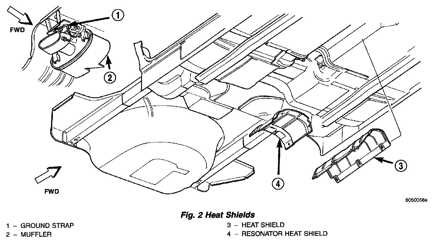 DESCRIPTIONThe exhaust system heat shields are attached to the under body of the vehicle. All engines are equipped with a heat shield crimped on the top of the catalytic converter.