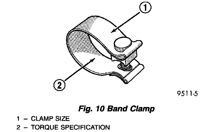NOTE: Band clamps are spot welded to exhaust system. If a band clamp must be replaced, the spot weld must be ground off the exhaust pipe.