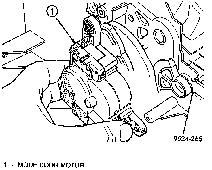 NOTE: If battery voltage is low or not sensed at the actuator/motor for less than a (60) second interval, the actuator/motor will be out of calibration. Remove the All (I. 0. D.) fuse for a minimum of (60) seconds. The actuator/motor will then self calibrate itself upon reinstallation of fuse.The mode door actuator is an electric motor. It mechanically positions the A/C unit panel/bi-level door and the floor/defrost door. Prior to part replacement, re-calibration of the HVAC actuator is recommended. Calibration is performed by disconnecting the battery negative cable or the removal of the instrument panel M-1 fuse. Electrical power should be re-established after (60) seconds which will automatically initiate the software calibration procedure. If this procedure fails, it will be necessary to replace the mode door actuator/motor. The mode door actuator/motor is not serviceable and must be replaced if found to be defective.