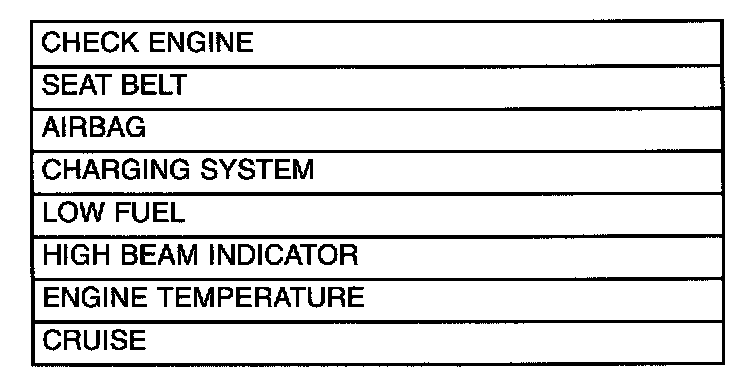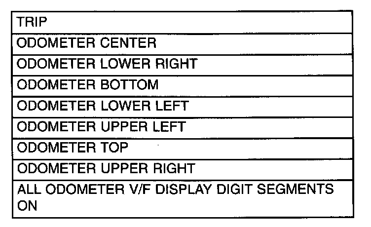 Initiate instrument cluster self-diagnostic by depressing the odometer/trip reset button while turning the ignition key to the OFF/RUN/START position. This will cycle an electronic display segment check and illumination in sequence of all CCD bus activated cluster warning indicators. There are four Check (CHEC) functions: