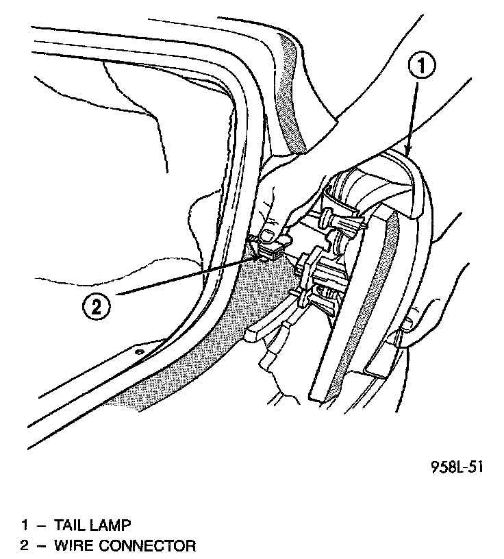 2. Remove wing-nuts attaching tail lamp to rear closure panel.