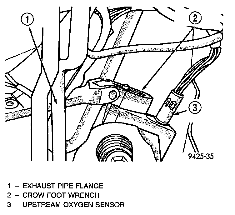 4. Remove sensor using an oxygen sensor crow foot wrench such as Snap-On tool YA8875 or equivalent.