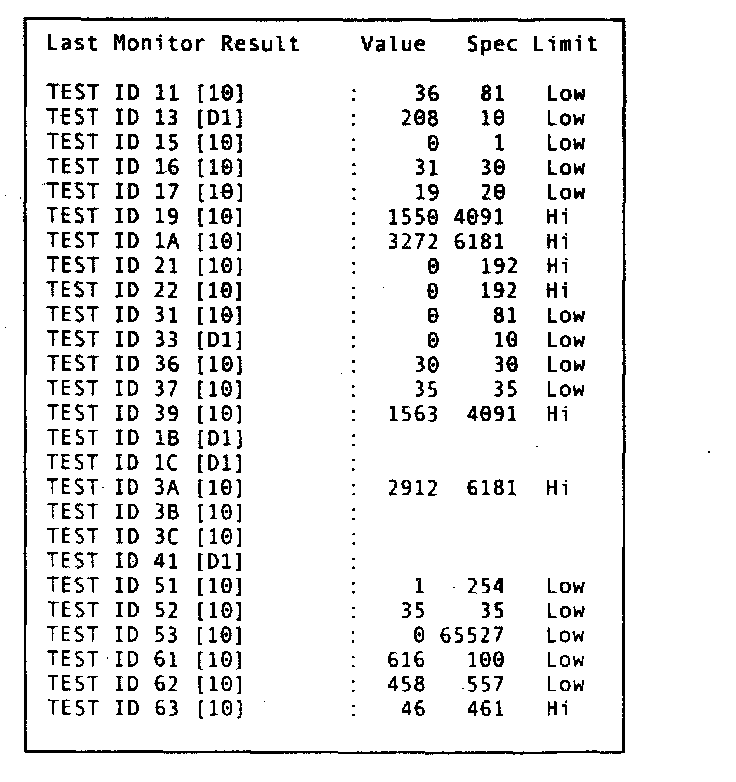 Keep in mind that no single vehicle will ever have all of these items stored at one time. Items are shown for example only. Some of the data may not be valid. MODE 6 Data is raw Decimal Data (not converted). Last Result data will not store if the PCM engine software is not calibrated for certain monitors or if monitors have not run and completed successfully.