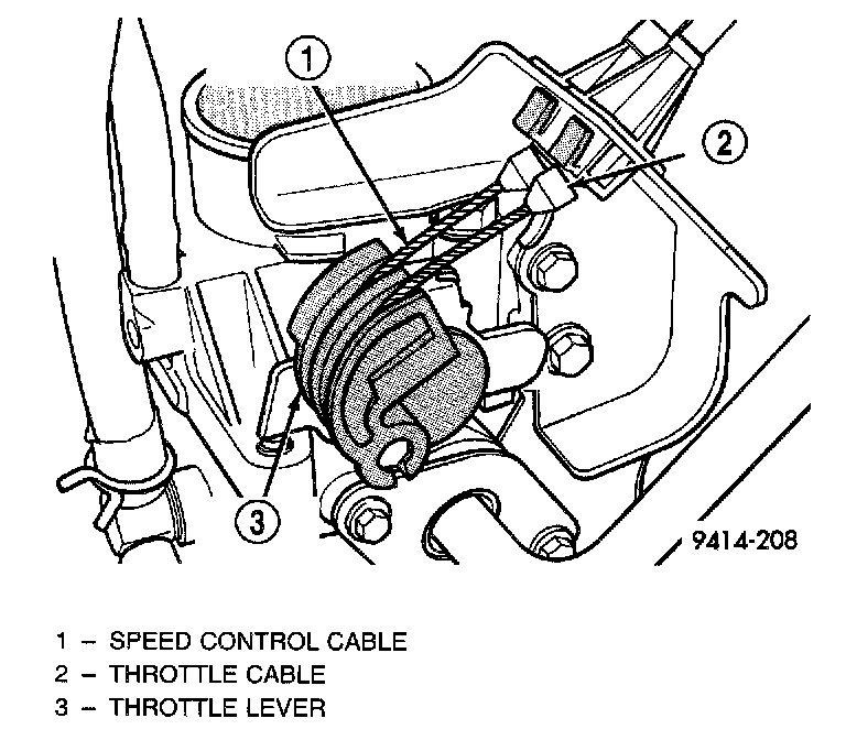 6. If equipped with speed control, remove speed control cable from throttle lever by sliding clasp out hole used for throttle cable.