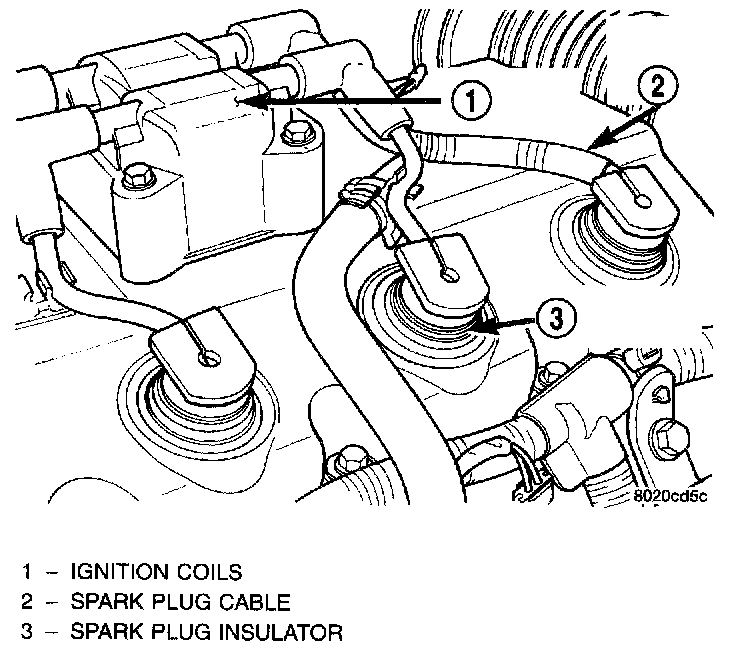 2. Transfer spark plug cables to new coil pack. The coil pack towers are numbered with the cylinder identification. Be sure the ignition cables snap onto the towers.