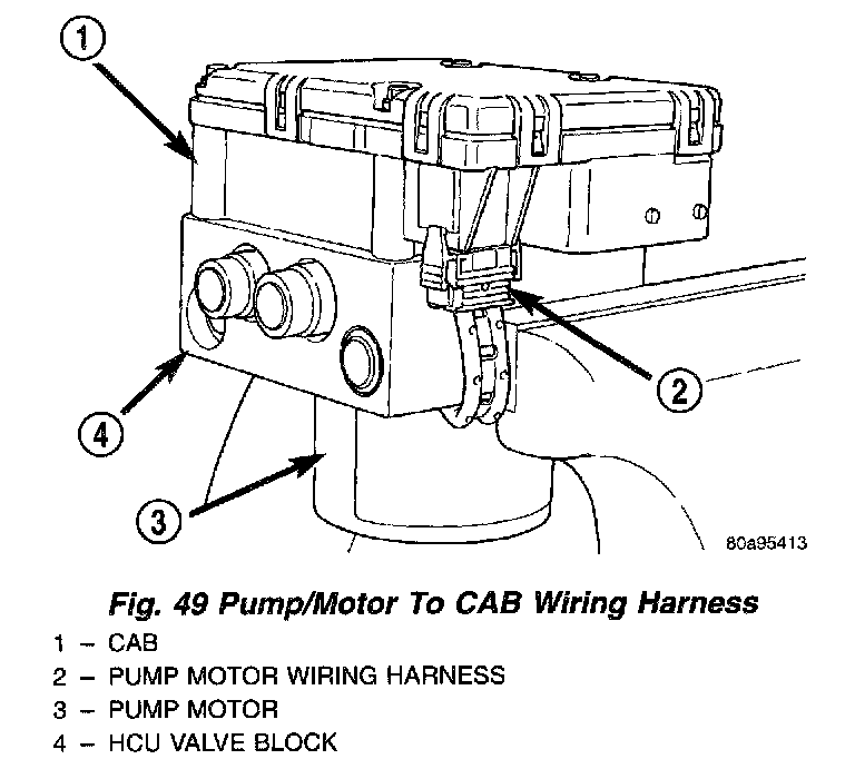 2. Disconnect the pump/motor wiring harness from the CAB.